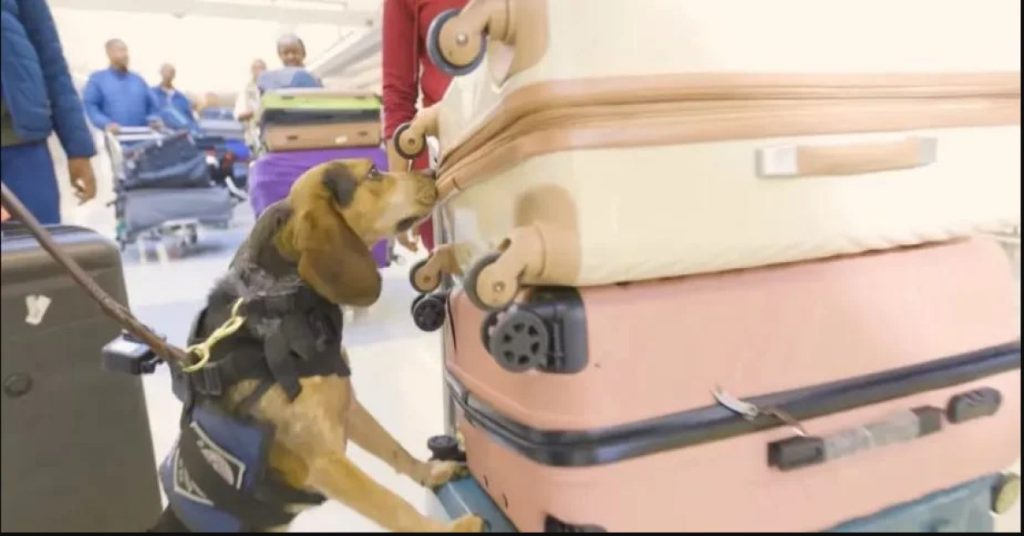 القصة لم تعد مجرد طعام في شنطة… لقد تحوّلت إلى قضية بين راكب وكلب يعمل في إنفاذ القانون!