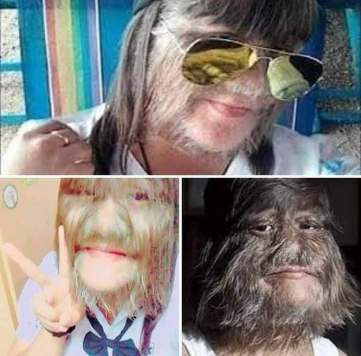 فتاة مشعـ,,ـرة في العالم” وفقاً لتصنيف موسوعة غينيس للأرقام القياسية.الفتاة من سكان بانكوك عاصمة تايلاند، وهي تعـ,,ـاني منذ الطفولة من مـ,,ـرض نـ,,ـادر – متلازمة أبرامز، المعروف أيضاً باسم فرط الشعـ,,ـر أو